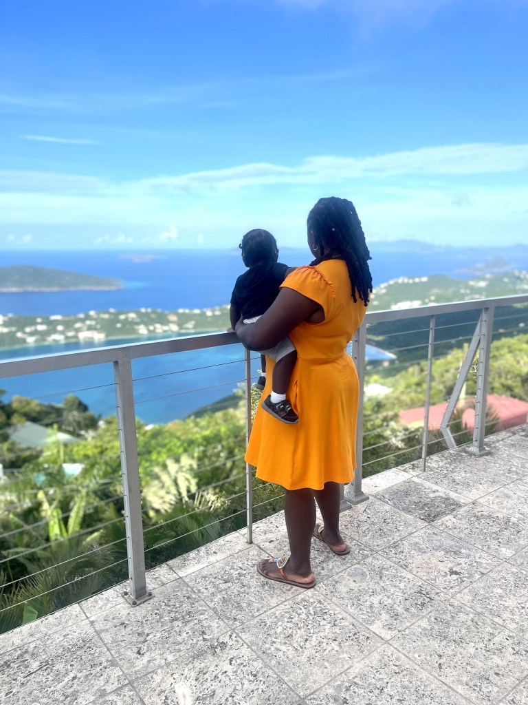 Fall 2022: Showing my 1 year old around St. Thomas, USVI and looking out at the British Virgin Islands.